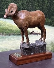 A limited-edition bronze sculpture of a mature Mountain Sheep Ram by Michael Booth. 14″ tall by 13″ wide. This is number 2 of only 10 castings. Signed and numbered by the artist and mounted on a walnut hardwood base with a brass identification plate. Free shipping within the U.S.